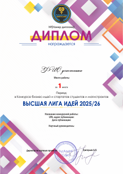 - Выдается победителям конкурса или призерам в различных номинациях. В документе указывается занятое место, название проекта, категория или номинация, которую участник занял.