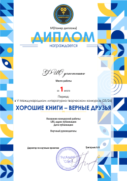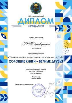 Диплом руководителя литературного конкурса